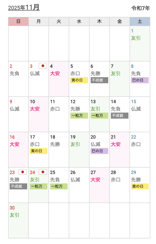 一粒万倍日は数が多いことから他の暦注と重なる場合があります。その場合は吉日と重なると一粒万倍日の効果が倍増し、凶日と重なると半減するという考え方があります。